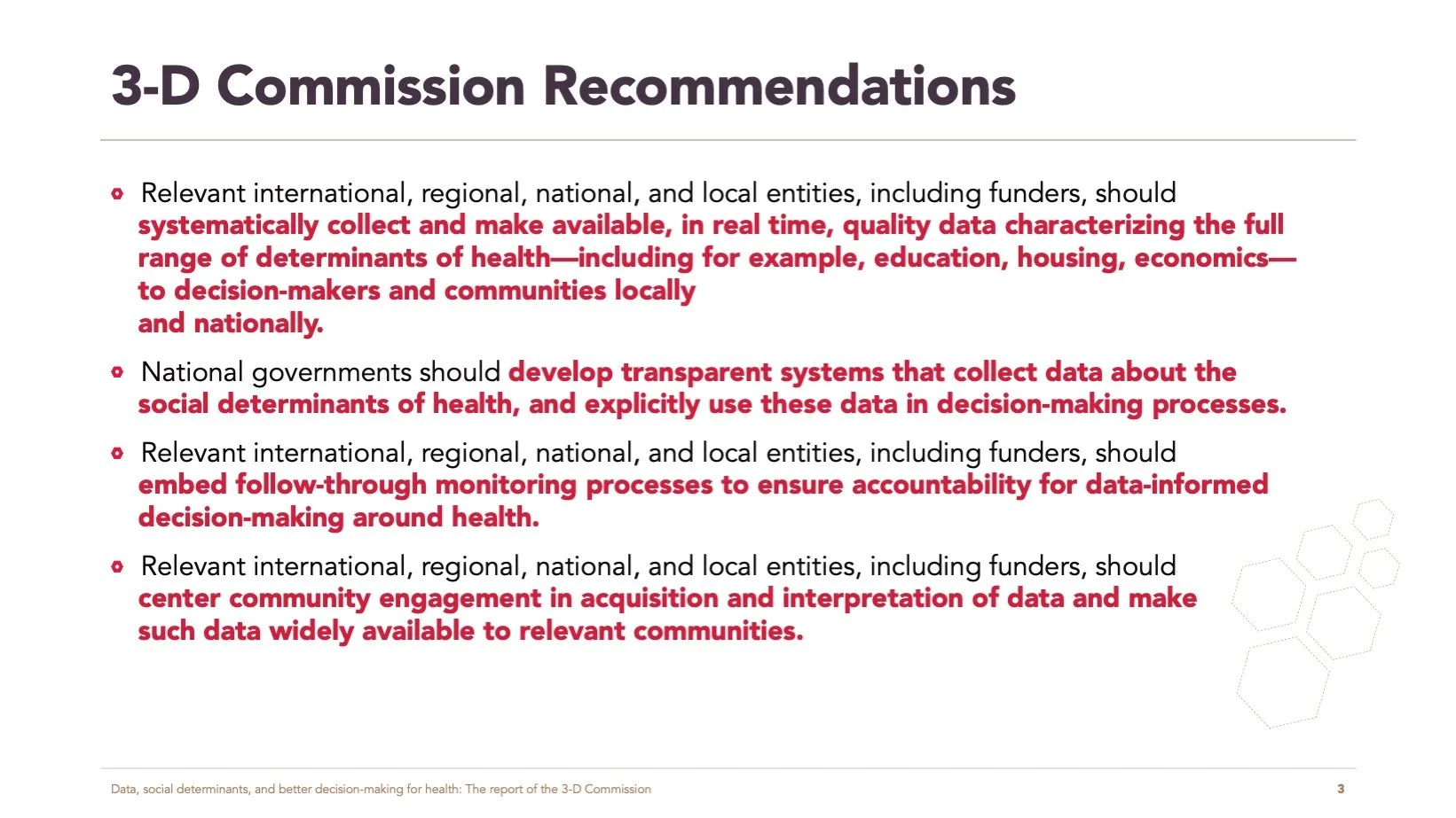 Project: The report of the 3-D Commission: Data, social determinants, and better decision-making for health